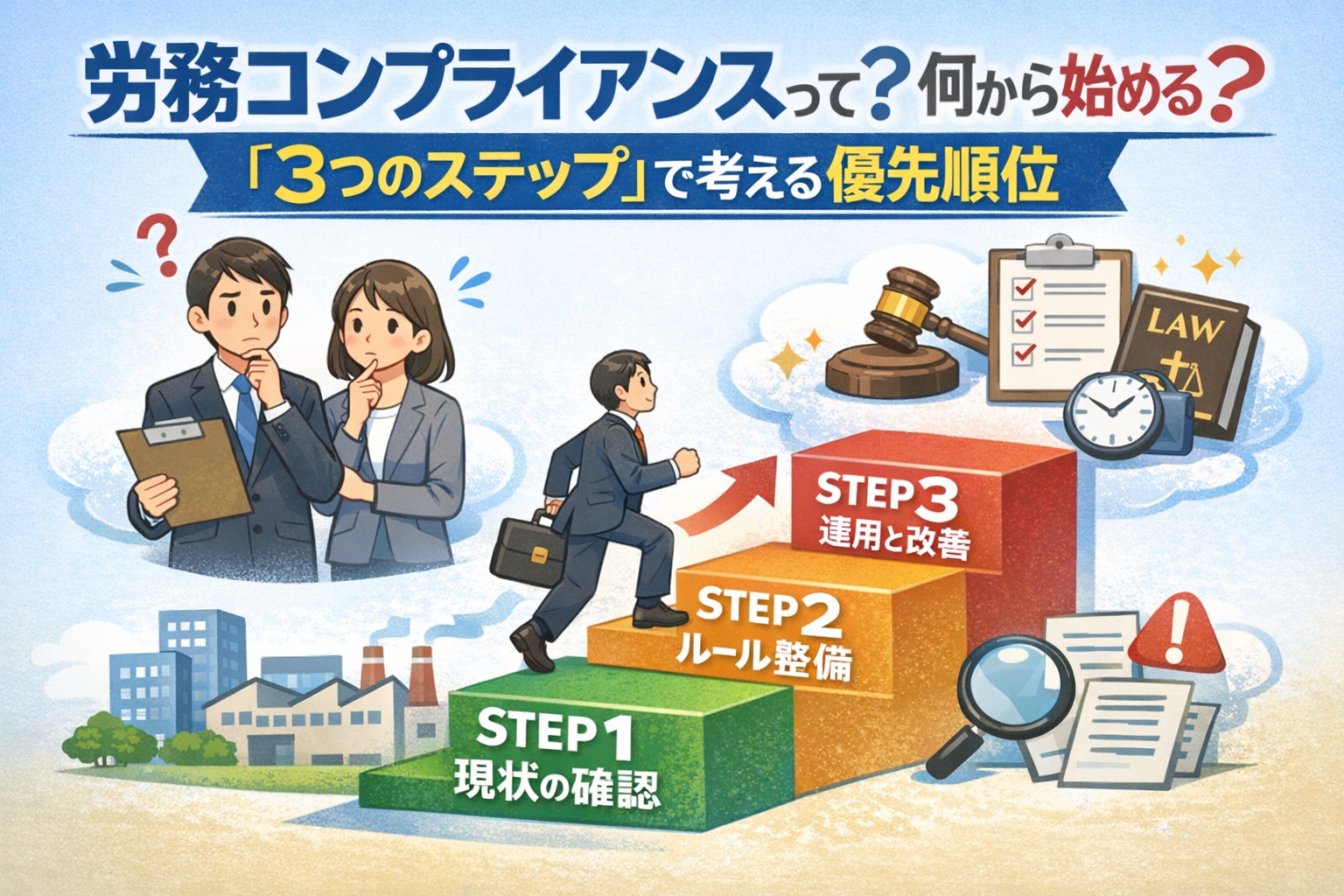 労務コンプライアンスって?何から始める?「3つのステップ」で考える優先順位